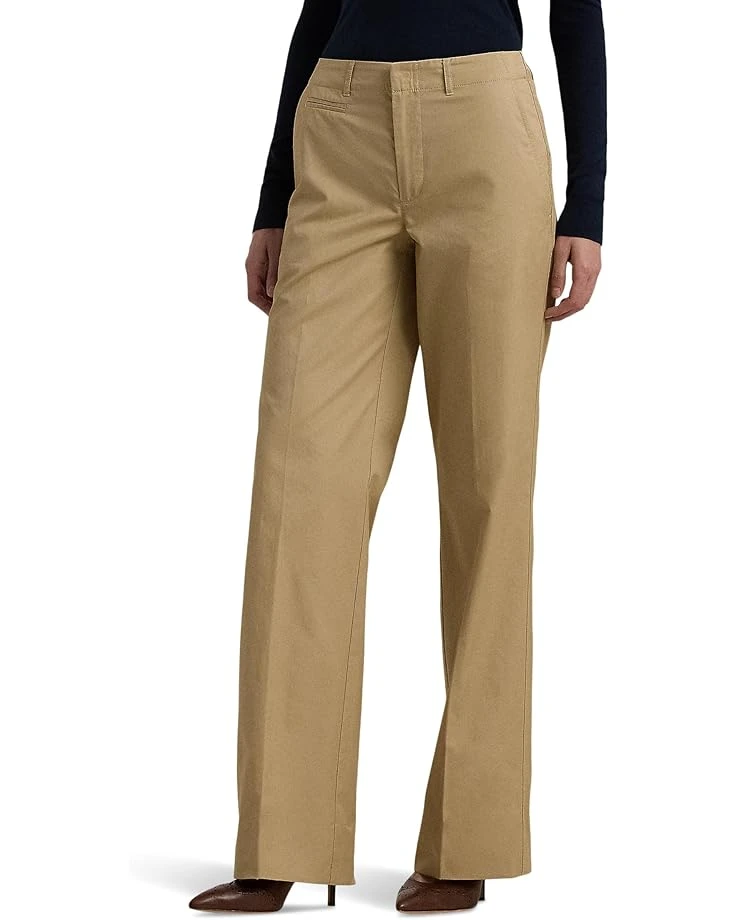 - Crisp creases and back waist darts enhance the streamlined silhouette of these high-rise pants, which are tailored with lightweight cotton twill for a polished look. Besom pockets and a “Lauren Ralph Lauren” engraved corozo buttoned closure add a refined finishing touch.