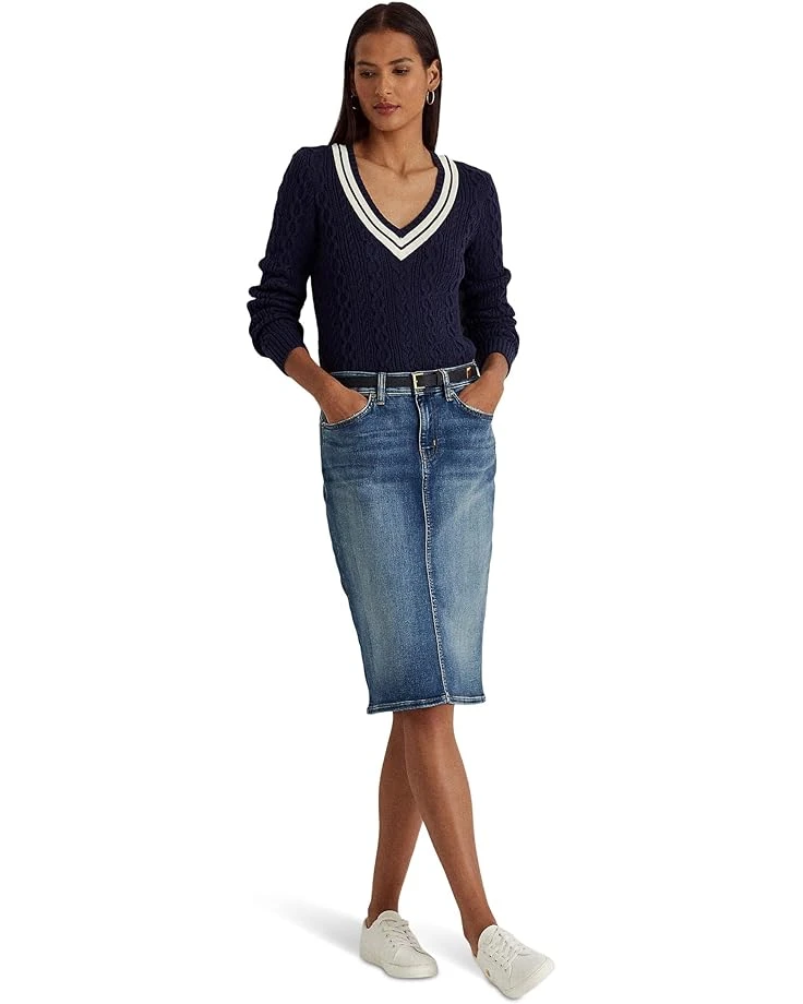 - The LAUREN Ralph Lauren® Denim Skirt is the perfect pair for that cute crop top you have been waiting to wear, or even that fuzzy sweater. The posibilities are endless.