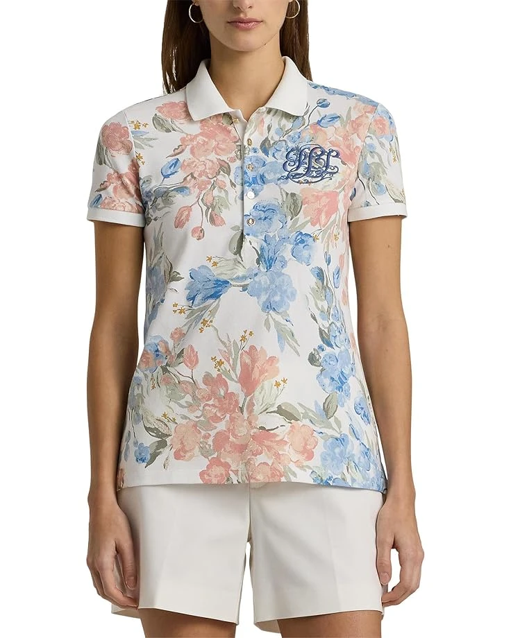 - Synonymous with LAUREN Ralph Lauren® style, this version of the polo shirt, which is crafted from pique cotton with a hint of stretch, is elevated by the season’s beautiful floral motif and an embroidered “LRL” monogram for a signature LAUREN Ralph Lauren finish.