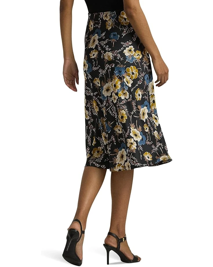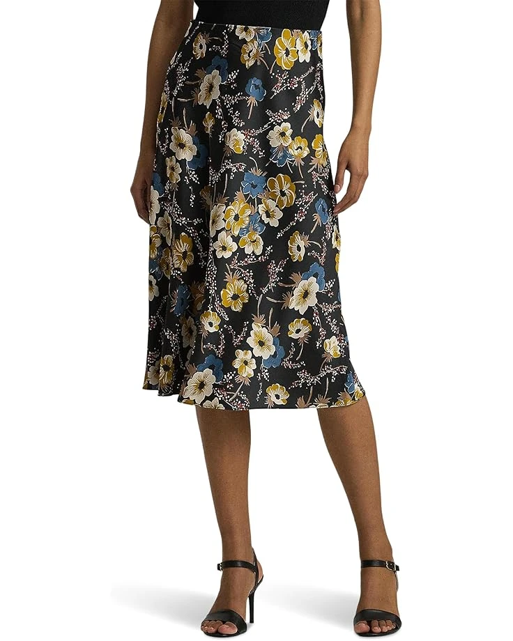 - Add a colorful twist to your everyday look and style wearing the LAUREN Ralph Lauren® Floral Satin Charmeuse Midi Skirt. The silky hand of satin charmeuse lends a fluid drape and subtle sheen to this midi skirt, which is refreshed with the season’s enchanting floral motif. This printed skirt features a mid-rise waist and an elasticized waistband. Catch everyone’s attention wherever you go wearing this floral skirt.