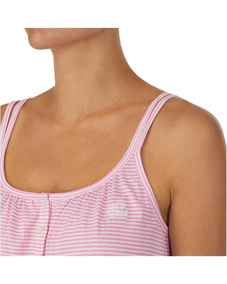 - Hit the sheets in cool comfort with the LAUREN Ralph Lauren® Knit Double Strap Button Neck Gown. This cotton nightgown is crafted with a double scoop neckline, double tank-style straps, three-button front placket, embroidered logo at the front left chest and features an allover thin stripe pattern giving it a delicate finish.