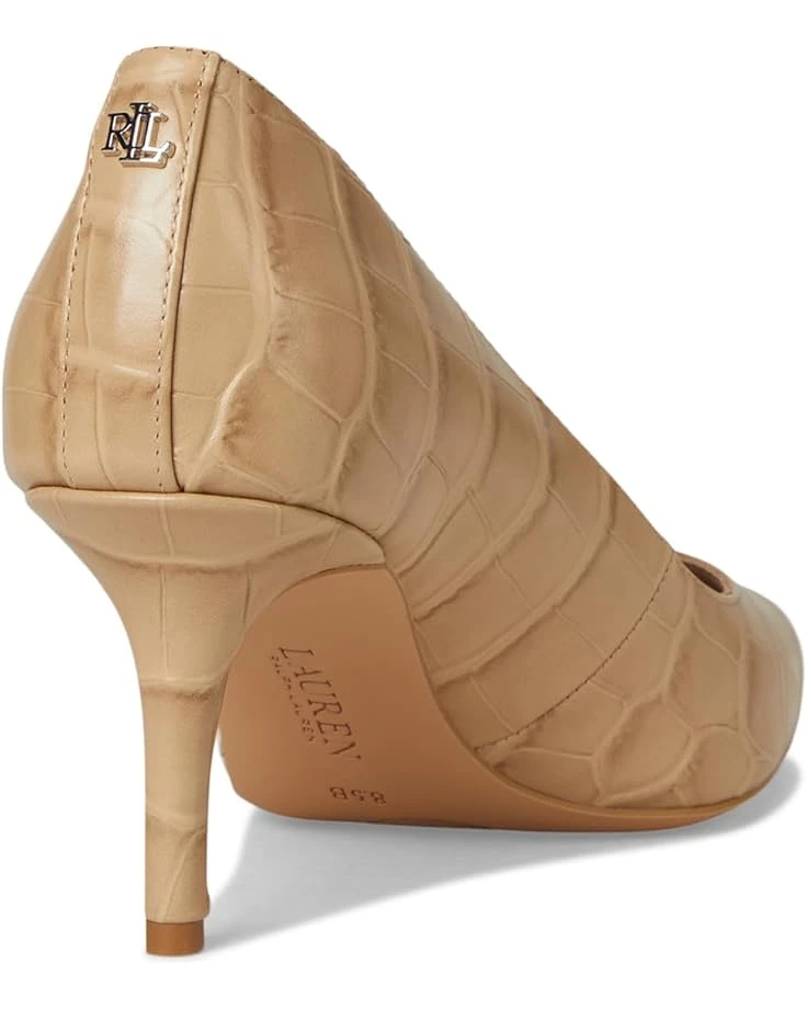 - Showcase your inner fashionista with these trend-setting pointy-toe LAUREN Ralph Lauren® Lanette Crocodile Embossed Leather Pumps that features a crocodile-embossed leather construction for subtle texture and a luxurious sensibility. A padded rubber insole ensures all-day comfort and style, while a brass finished “LRL” logo at the heel provides a signature Lauren finish.