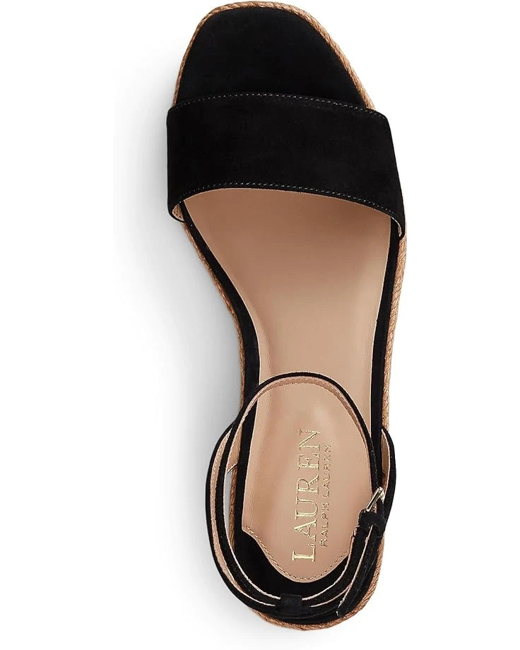 - Walk light wearing the stylish and comfy LAUREN Ralph Lauren® Leona Suede Espadrille. Crafted from leather upper, this pair of open toe sandals features wedge heel, ankle strap buckled closure, and metal brand logo at the back of the heel.