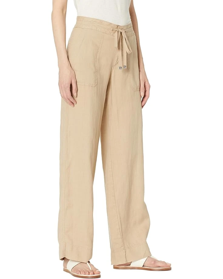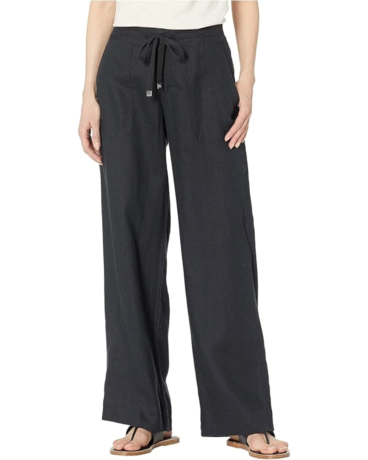 - Wide-leg pants feature a relaxed fit on an airy linen fabrication.