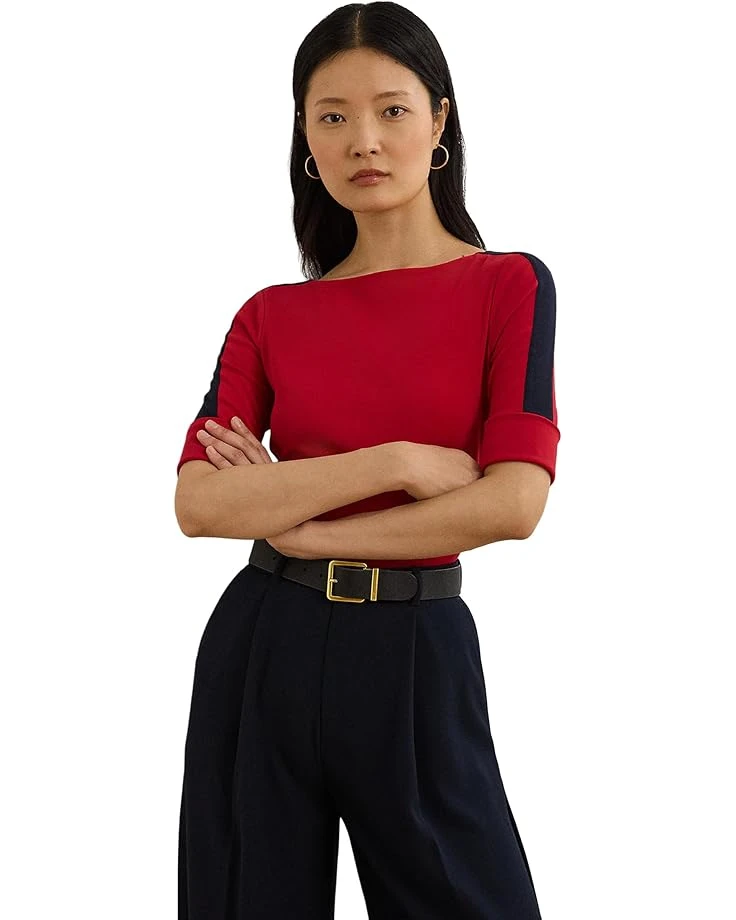 Lauren Ralph Lauren Petite Two-Tone Stretch Cotton Elbow-Sleeve Tee | Shirts & Tops