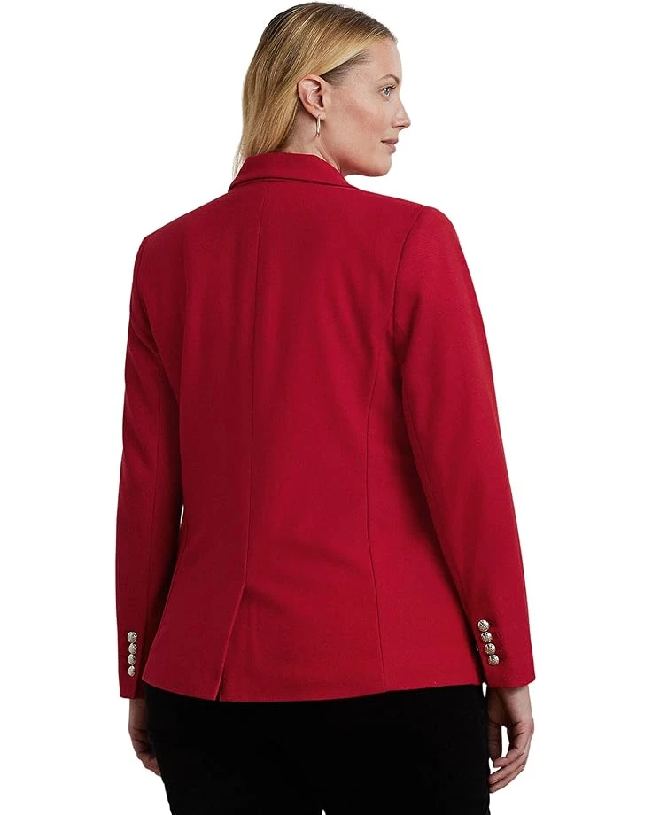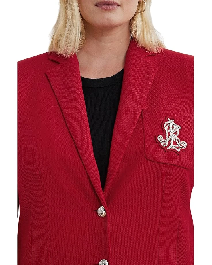 - Step into polished sophistication with the LAUREN Ralph Lauren® Plus Size Bullion Jacquard Blazer, a timeless piece that exudes elegance and refinement. This blazer features classic notch lapels and a two-button silhouette adorned with crest-embossed buttons, adding a touch of luxury to the design. Elevating the look is the bullion “LRL” patch embroidered at the left chest, showcasing attention to detail and signature style.