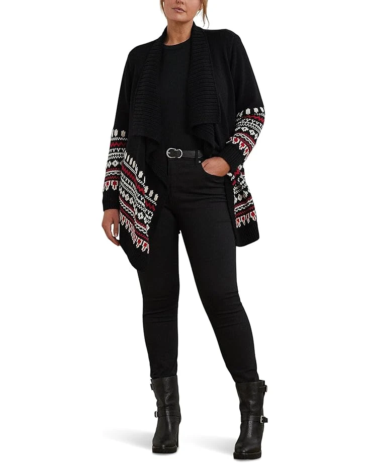 - Designed with a cascading shawl collar, this cozy Lauren Ralph Lauren® Plus Size Fair Isle Cotton Shawl-Collar Cardigan is distinguished by the season’s timeless Fair Isle pattern. It features long sleeves with ribbed cuffs, ribbed hem, and an open front. Perfect for elevating your next special occasion look or as a thoughtful holiday gift.