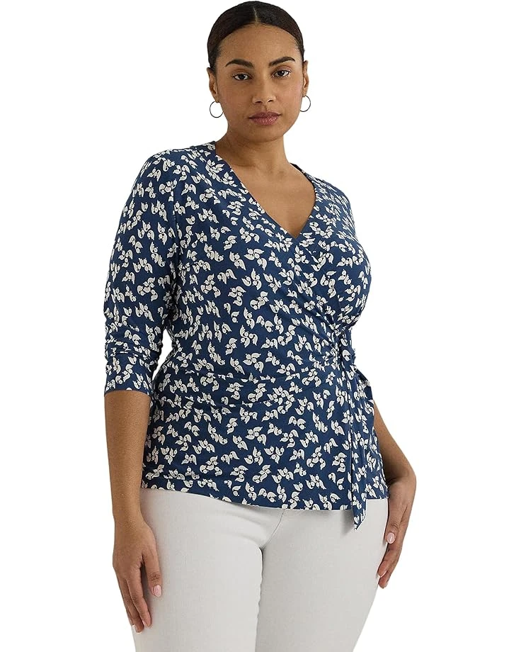 - Make your style game fun and fabulous by donning the classy and comfortable LAUREN Ralph Lauren® Plus-Size Floral Stretch Jersey Top with a V-neckline rendered on an allover floral print stretch jersey with faux-wrap detailing.