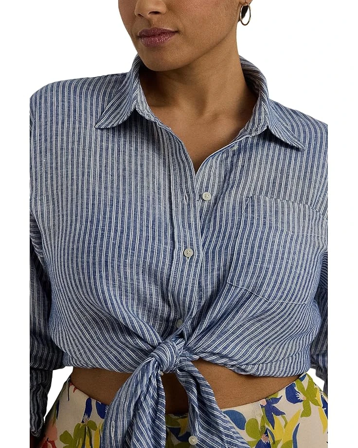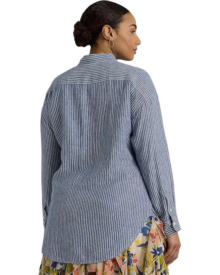 Lauren Ralph Lauren Plus-Size Relaxed Fit Pinstripe Linen Shirt | Shirts & Tops