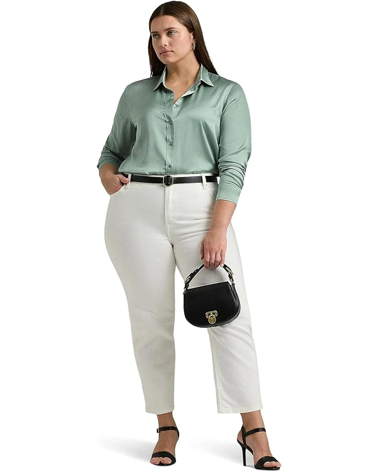 - Create a chic look or prepare for formal occasions by wearing the LAUREN Ralph Lauren® Plus-Size Satin Charmeuse Shirt. The long sleeves, buttoned barrel cuffs, and a point collar offer added comfort and style. Crafted from glossy satin Charmeuse fabric that offers a luxurious look, this plus-size shirt takes your comfort to the next level. The buttoned front closure with brand-engraved pearlized buttons offers easy wear. This button-down satin shirt is perfect for a formal look or a business meeting.