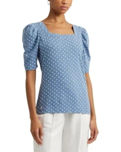 - Take on your casual days in an elegant style without losing comfort wearing the LAUREN Ralph Lauren® Polka-Dot Slub Jersey Puff-Sleeve Tee. Highlighting a charming polka-dot print all over, the tee is defined by a square neckline coupled with feminine puffed elbow-length sleeves.