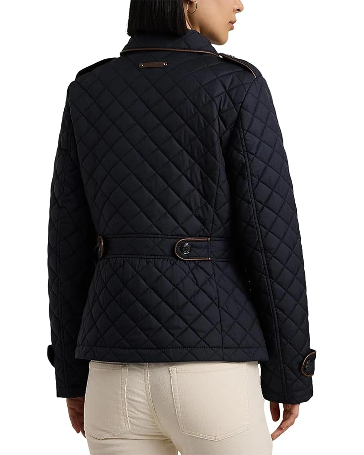- Accentuate your look wearing the Lauren Ralph Lauren® Quilt Short Db Crd Trim. With allover diamond design print, this jacket features collared neckline, long sleeves, button front closure, and straight hem.