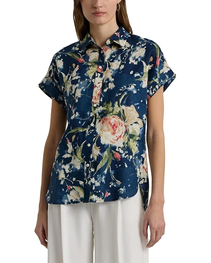 - Slay a stylish look by styling your regular jeans with the LAUREN Ralph Lauren® Relaxed Fit Floral Short-Sleeve Shirt. The relaxed, easy-fit shirt has a point collar, dropped shoulder silhouette, short sleeves with rolled cuffs, a buttoned placket with LRL engraved buttons, and a shirttail hemline. The shirt features an intricate floral design that elevates the overall look, adding a feminine touch to it.
