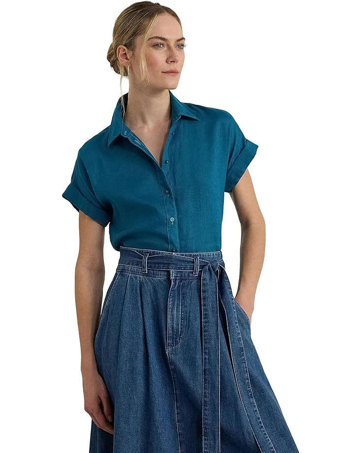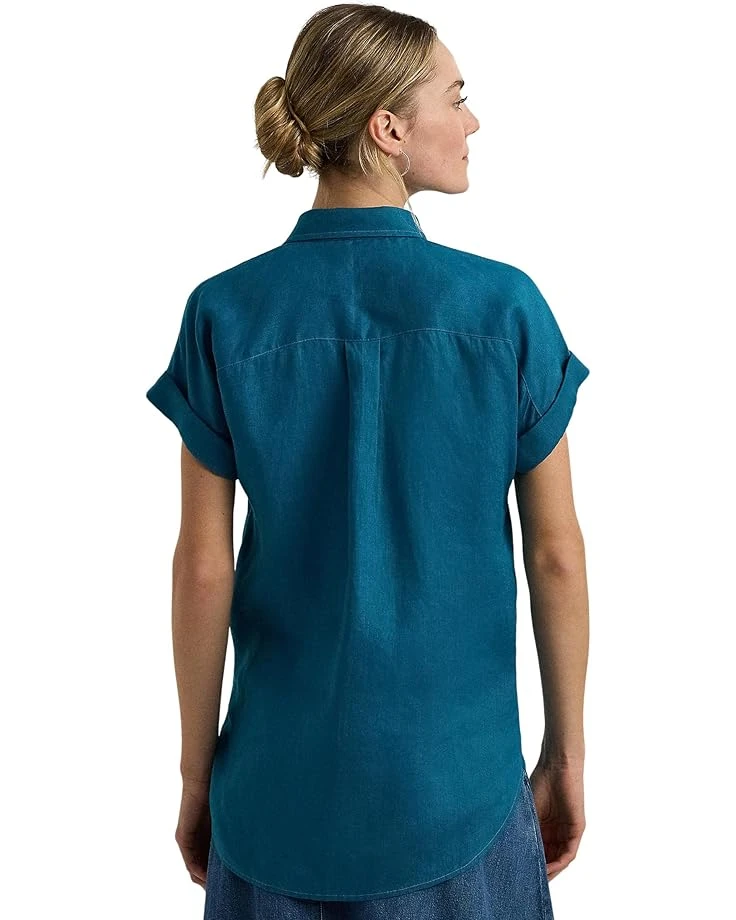 - Highlighting a feminine take on the menswear-inspired silhouette, the LAUREN Ralph Lauren® Relaxed Fit Linen Short-Sleeve Shirt is a must-have! This modern shirt features a relaxed, easy fit and comes structured with a point collar, short dolman sleeves with double-rolled cuffs, a buttoned front placket, and a box-pleated back yoke.