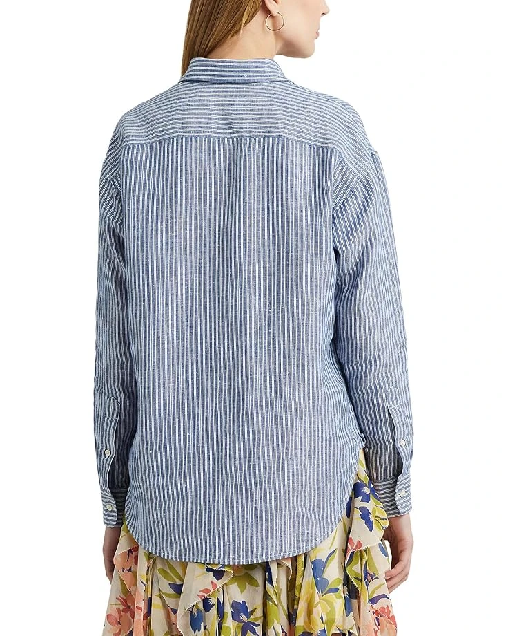 - Versatile and comfortable, the LAUREN Ralph Lauren® Relaxed Fit Pinstripe Linen Shirt is something you would love to put on any day. Designed in airy linen with striking yarn-dyed pinstripes, this shirt comes in a relaxed, easy fit and is intended to hit at the hip. Highlighting a blend of the classic and the modern, it looks stylish with its spread collar, long sleeves with buttoned barrel cuffs, dropped shoulders, and shirttail hem.