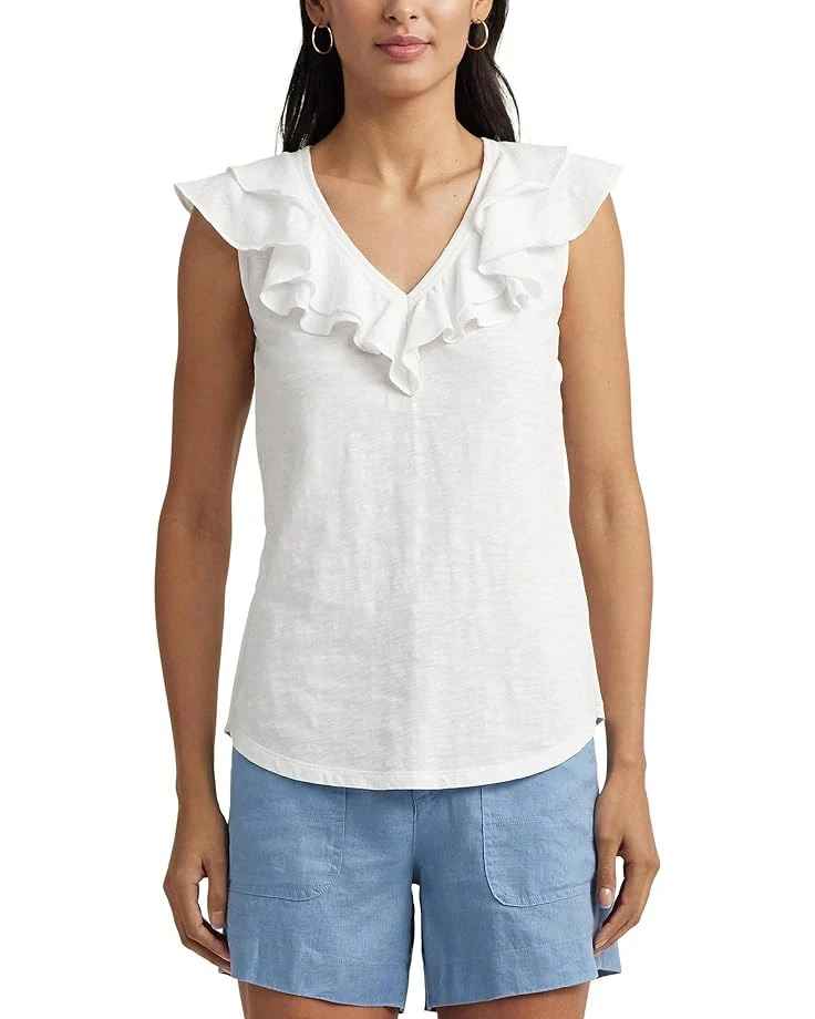 Lauren Ralph Lauren Ruffle-Trim Slub Jersey Sleeveless Tee | Shirts & Tops
