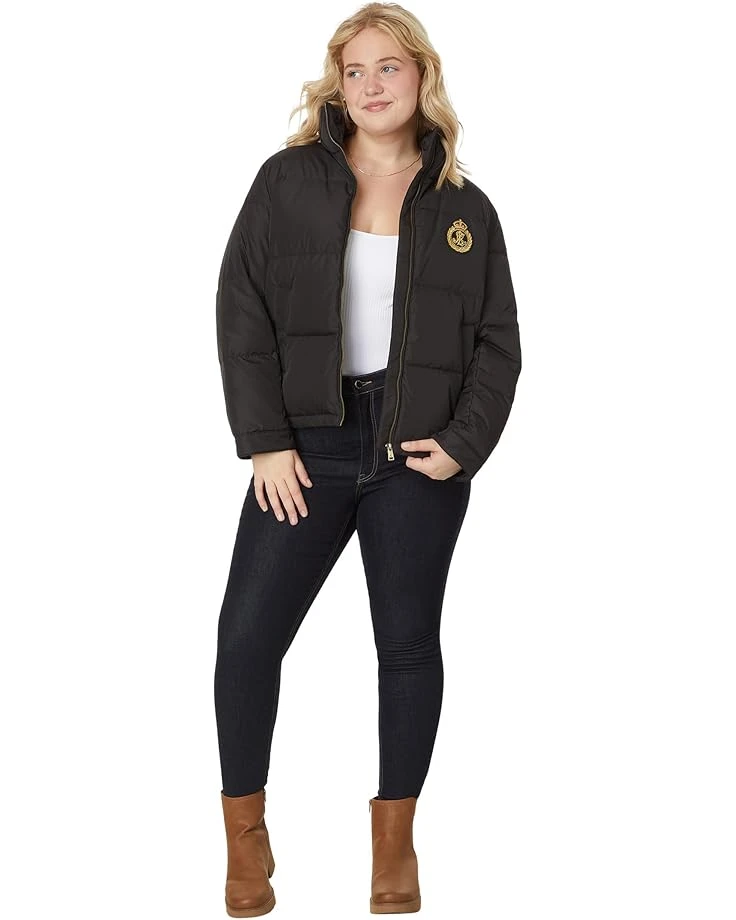- Up your style panache this season wearing the warm Lauren Ralph Lauren® Short Puffer W New Crest. This relaxed fit jacket features a stand collar with zippered front closure and side hand pockets for ease, long sleeves, and branding patch on the left chest. It comes with down-blend insulation that provides high warmth with low weight, horizontal baffles to keep insulation in place, paired with a synthetic, and poly fill insulation through the hood.