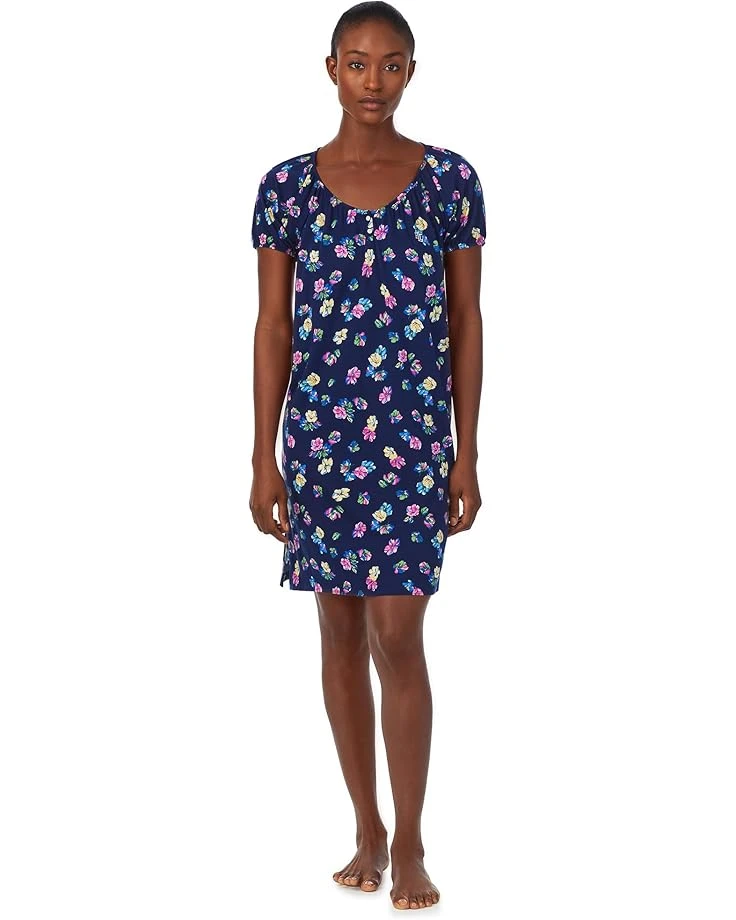 - Featuring an all-over print that offers an eye-catching look, get ready for a good night’s sleep by wearing the LAUREN Ralph Lauren® Short Sleeve V-Neck Gown. Super comfortable and breathable, the cotton blend fabric of this printed nightgown takes your comfort to the next level. The piping details at the neck and sleeves offer added style. A great addition to your wardrobe, this cotton nightgown is perfect for your everyday wear.