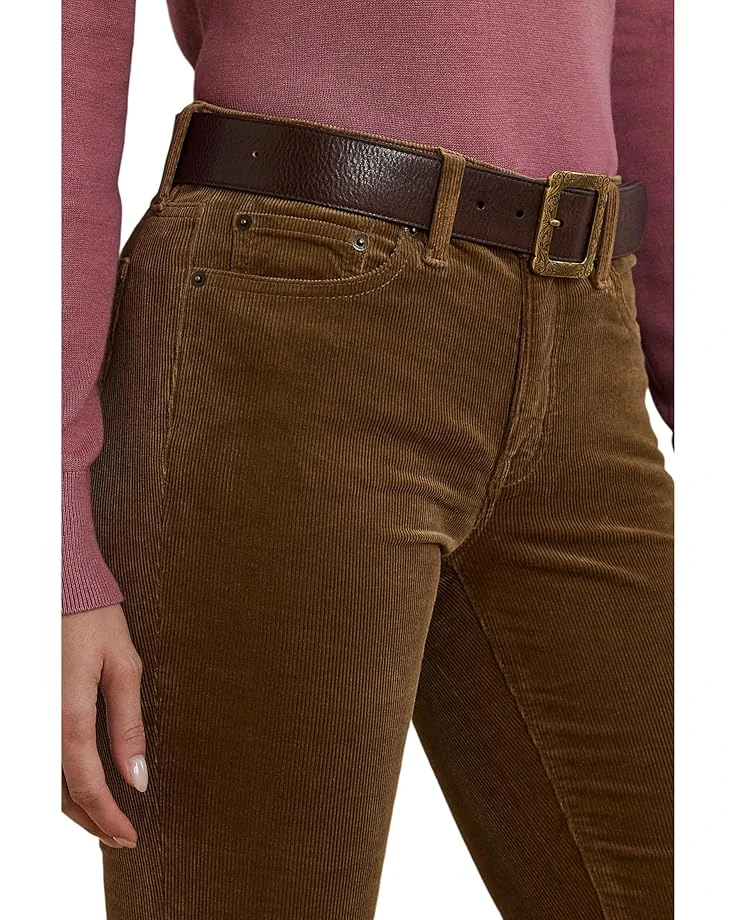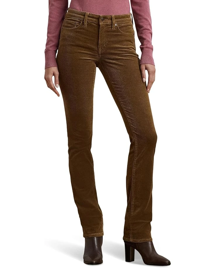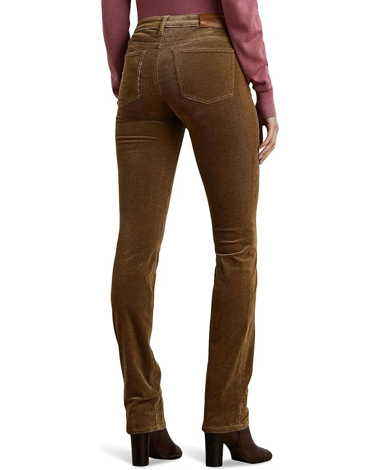 - Crafted with stretch-infused corduroy fabric that offers better movement and a subtle sheen, the LAUREN Ralph Lauren® Stretch Corduroy Mid-Rise Straight Pants are perfect to match different styles and work for different occasions. The straight, streamlined silhouette adds to their comfort and style while the belt loops offer added functionality. These mid-rise pants come with a debossed signature leather patch at the back right waist. Pair your stylish tops and shirts with these comfy and chic trousers.