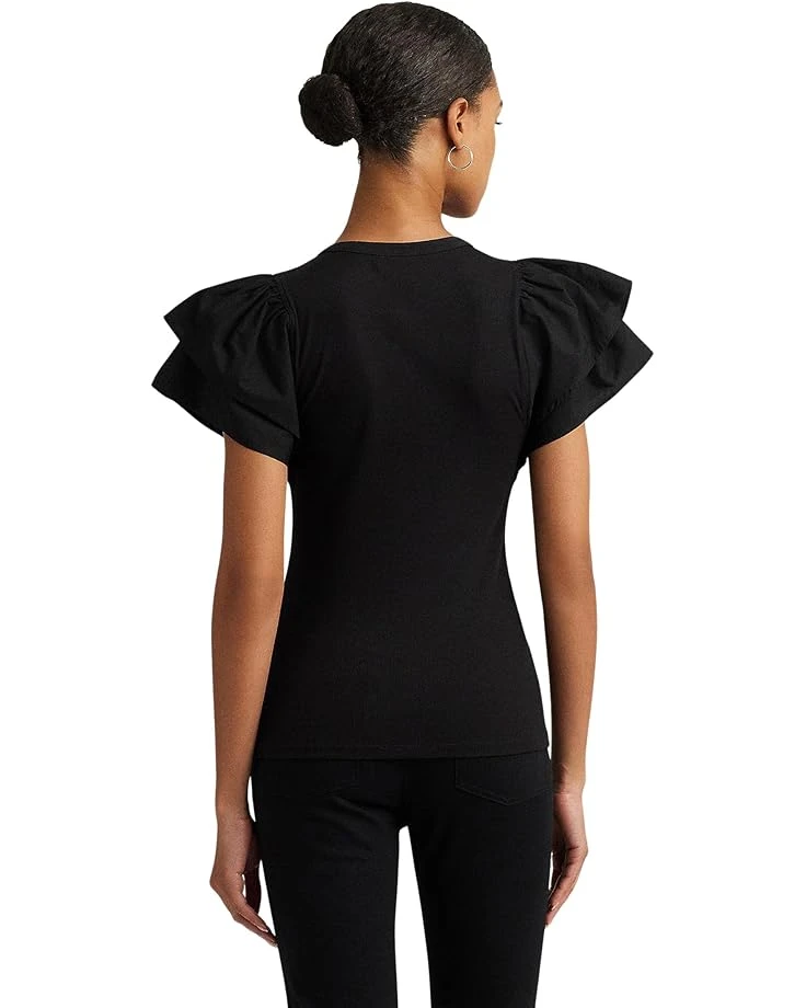 - Add a touch of sophistication to your wardrobe by adding the Lauren Ralph Lauren® Stretch Cotton Flutter-Sleeve Henley Top. Crafted with stretch cotton for a soft hand, this top features a crew neckline and buttoned quarter-placket for a timeless look. The short, flutter sleeves add a playful touch, while the shirring into the sleeve caps gives it a unique twist.