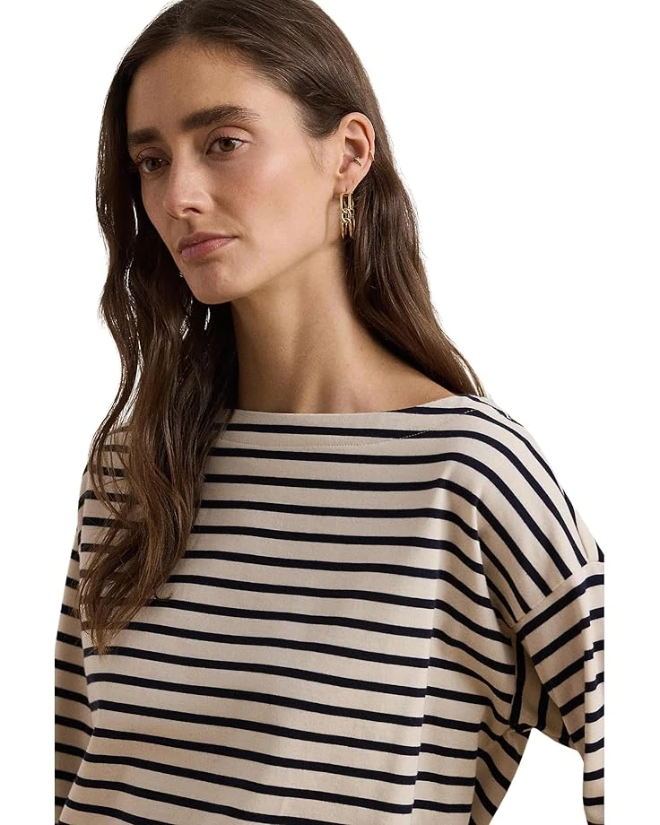 - Complement your casual style with the LAUREN Ralph Lauren® Striped Cotton Jersey Boatneck Top. Crafted from cozy cotton, this top offers a boatneck, dropped shoulders, long sleeves, and stripe detailing throughout.