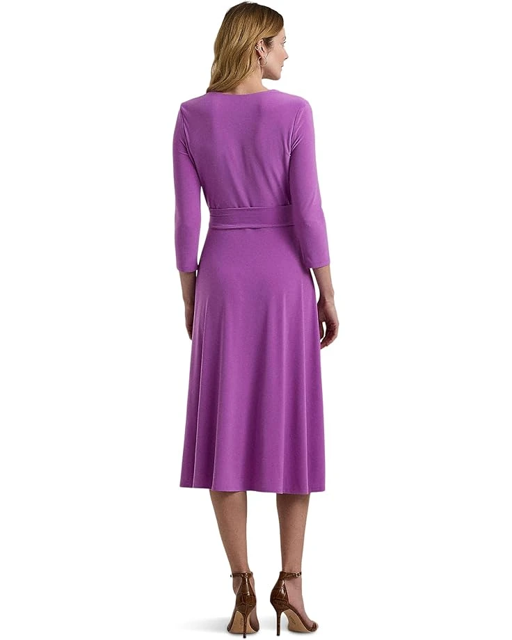 - A perfect dress for every occasion, the LAUREN Ralph Lauren® Surplice Jersey Dress features a flattering surplice neckline, three-quarter-length sleeves, and a straight hem. The jersey construction of the dress creates comfort and ease of movement while a self-tie sash accentuates the natural curves of the waist. Lined at the bodice for better coverage, this chic dress makes a great addition to your wardrobe.