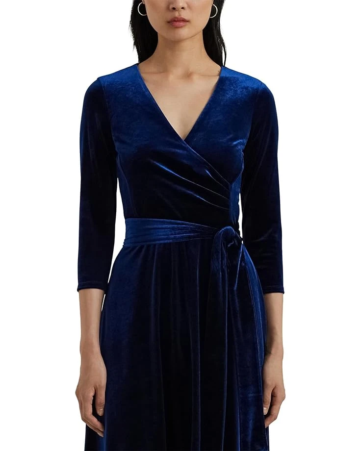 - Be ready for any occasion in elegant style in the LAUREN Ralph Lauren® Surplice Velvet Dress. Featuring a surplice neckline, three-quarter sleeves, front bodice princess seams, and an A-line silhouette.
