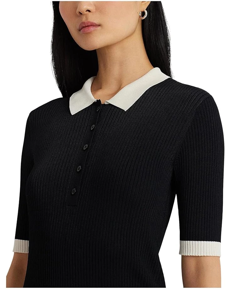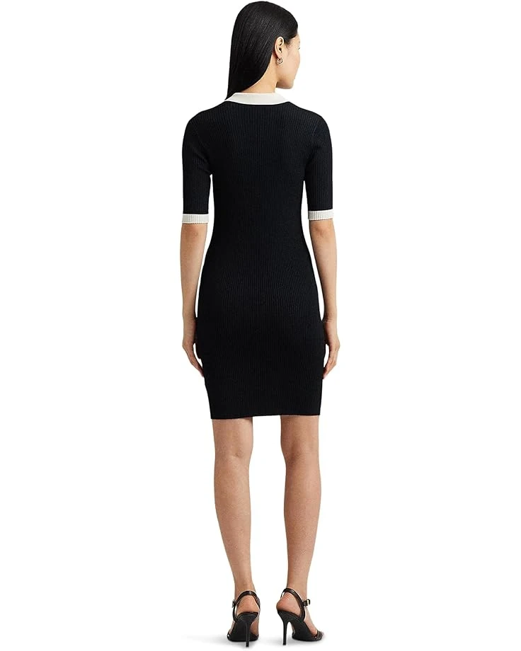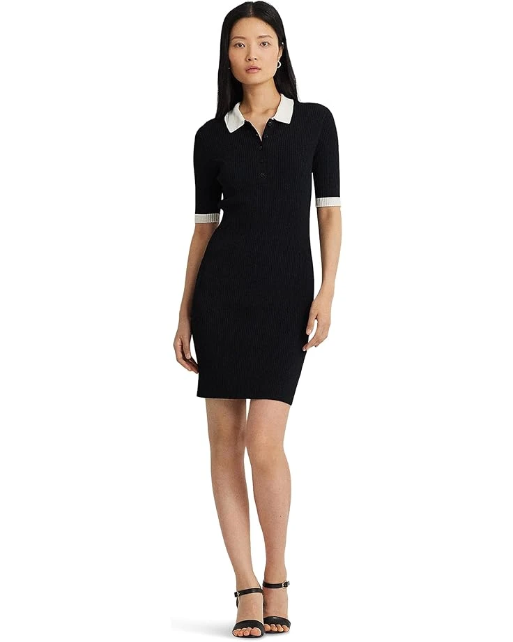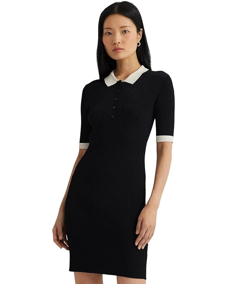 - Redefine your classy and elegant look by styling the LAUREN Ralph Lauren® Two-Tone Rib-Knit Polo Sweater Dress. The buttery-soft, two-toned knit drapes beautifully, hugging your curves with a figure-flattering silhouette. The iconic polo collar and five engraved buttons add a touch of heritage charm, while the short sleeves offer year-round versatility.