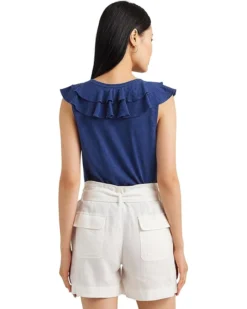 Lauren Ralph Lauren Ruffle Trim Slub Jersey Sleeveless Tee | Shirts & Tops